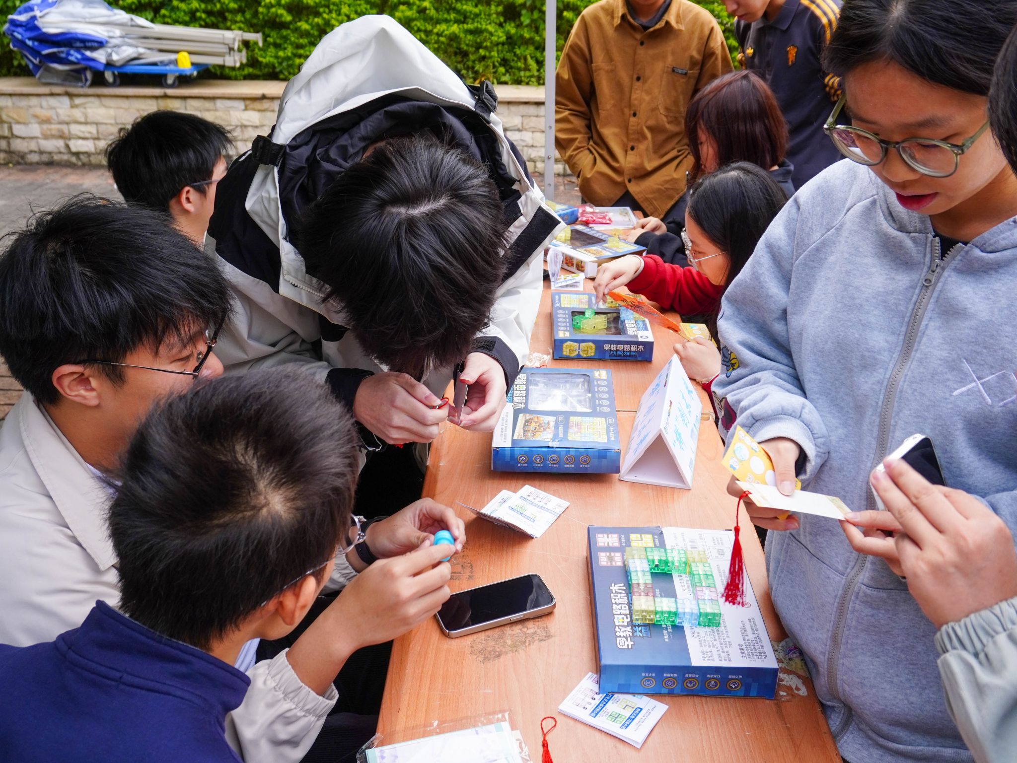 活动采用集章激励机制,同学们完成各摊位指定活动即可获得印章,集齐三个及以上印章便能参与抽奖,现场参与热情高涨。